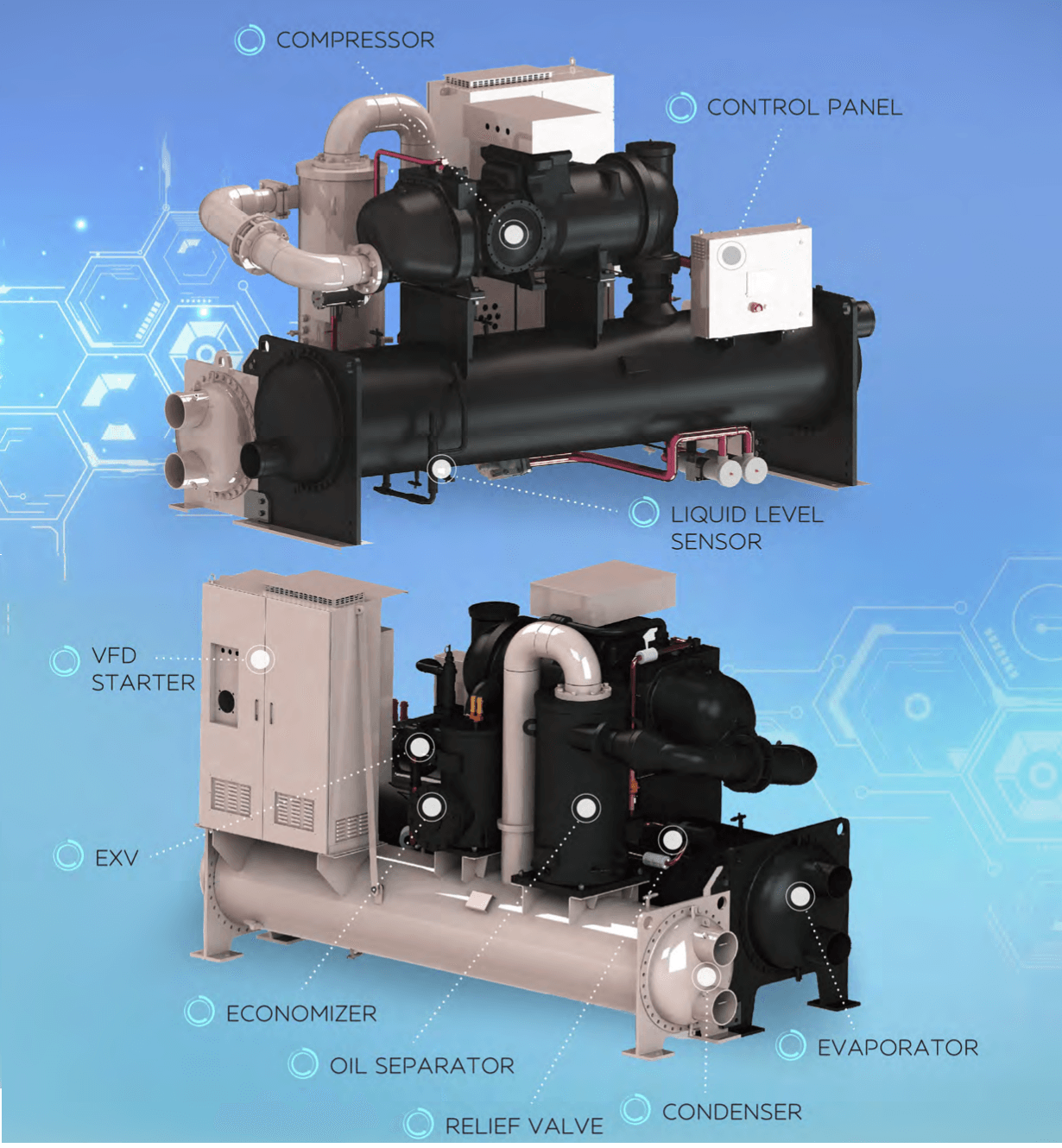Dải công suất lạnh 200–500 RT.
