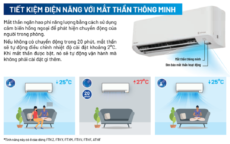 Giảm hóa đơn điện và duy trì nhiệt độ ổn định nhờ Inverter; cảm biến hồng ngoại giúp hạn chế hao phí khi không có người.