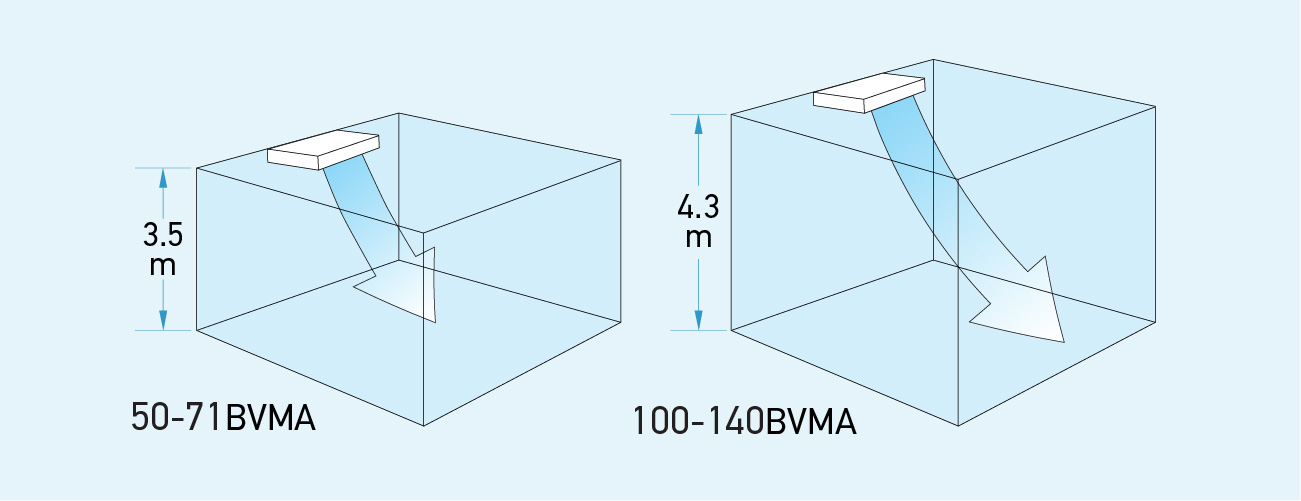 Luồng gió thổi mạnh mẽ thích hợp cả khi trần cao.