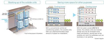 Dàn nóng của hệ VRV IV W đã loại bỏ được yêu cầu giải nhiệt bằng không khí ngoài trời. Tính năng này giúp cho hệ thống có thể lắp đặt bên trong tòa nhà, làm gia tăng tính linh hoạt trong thiết kế và dễ dàng phù hợp với những loại công trình khác nhau, mở ra nhiều ý tưởng sáng tạo cho ngoại thất công trình.