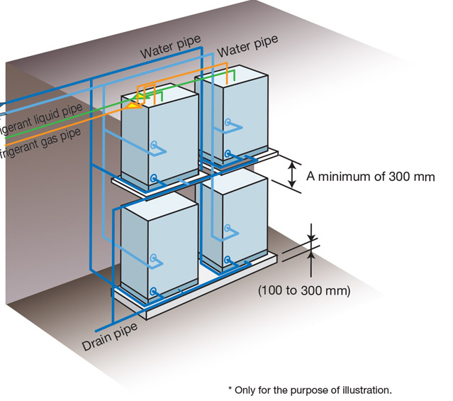 Hệ thống VRV IV W cho phép chiều dài đường ống môi chất lạnh tối đa là 120m và 50m chênh lệch độ cao tối đa giữa dàn lạnh và dàn nóng. Ống nước không được lắp đặt trong khu vực có người nên hạn chế khả năng rò rỉ.