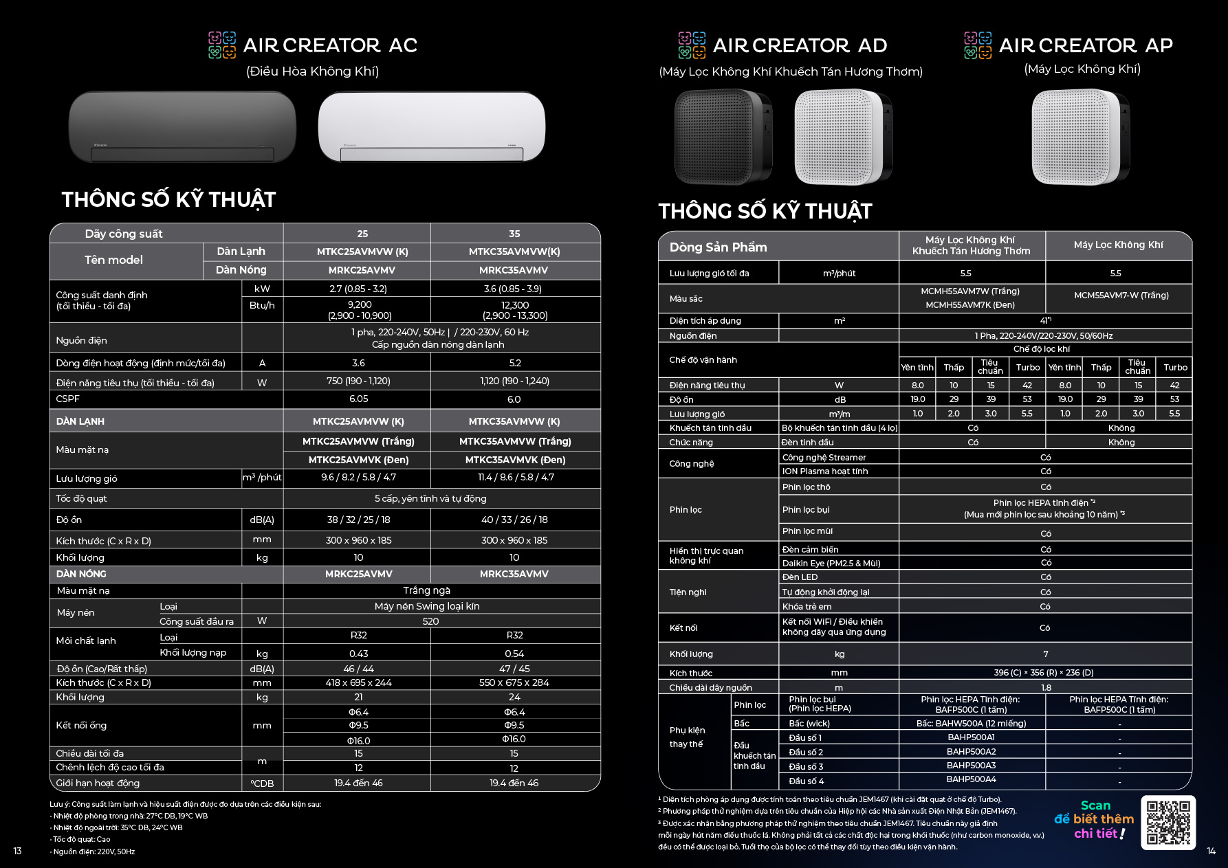 THÔNG SỐ KỸ THUẬT CHUNG Loại máy CO/HP CO Công nghệ inverter Có Công suất làm lạnh HP kW Btu/h 1 2.7 (0.85 - 3.2) 9,200 (2,900 - 10,900) Công suất sưởi HP kW Btu/h Phạm vi làm lạnh hiệu quả * m2 <=12 Điện năng tiêu thụ (tối thiểu - tối đa) W 750 (190 – 1,120) Tiết kiệm điện ★★★★★ Hiệu suất năng lượng (CSPF) 6.05 THÔNG TIN DÀN LẠNH Model MTKC25AVMVW (K) Kích thước (Cao x Rộng x Dày) mm 300 x 960 x 185 Trọng lượng kg 10 Độ ồn (Cao / Trung bình / Thấp / Yên tĩnh) dbA 36 / 32 / 25 / 18 THÔNG TIN DÀN NÓNG Model MRKC25AVMV Kích thước (Cao x Rộng x Dày) mm 418 x 695 x 244 Trọng lượng kg 21 Độ ồn (Cao / Cực thấp) dbA 46/44 THÔNG TIN CHUNG Môi chất lạnh R32 Chiều dài tối đa m 15 Chênh lệch độ cao tối đa m 12 Ghi chú: *Phạm vi làm lạnh hiệu quả tùy thuộc vào thiết kế và vị trí căn phòng nên chỉ số về phạm vi làm lạnh hiệu quả chỉ mang tính chất tham khảo. Các giá trị trên tương ứng với nguồn điện 220V, 50 Hz. Điều kiện đo lường 1. Công suất lạnh dựa trên: Nhiệt độ phòng 27°CDB, 19°CWB, nhiệt độ ngoài trời 35°CDB, 24°CWB, chiều dài đường ống 7,5m 2. Mức độ ồn dựa vào điều kiện nhiệt độ như mục 1. Các giá trị quy đổi này không có dội âm. Độ ồn thực tế đo được thông thường cao hơn các giá trị này do ảnh hưởng của điều kiện môi trường xung quanh. 3. CSPF dựa trên tiêu chuẩn TCVN 7830: 2015 Đối với máy lọc không khí: *1 Diện tích phủ sóng được tính toán theo JEM1467. (khi cài đặt FAN là Turbo) *2 Giá trị CADR được kiểm tra theo JEM 1467 Phụ lục C. (khi cài đặt FAN là Turbo) *3 Được xác minh bằng phương pháp thử nghiệm dựa trên JEM1467. Tiêu chuẩn giả định rằng mỗi ngày hút từ năm điếu thuốc trở lên. Không phải tất cả các chất độc hại trong khói thuốc lá (carbon monoxide, v.v.) đều có thể bị loại bỏ. Tuổi thọ của phon lọc có thể thay đổi tùy thuộc vào điều kiện hoạt động.