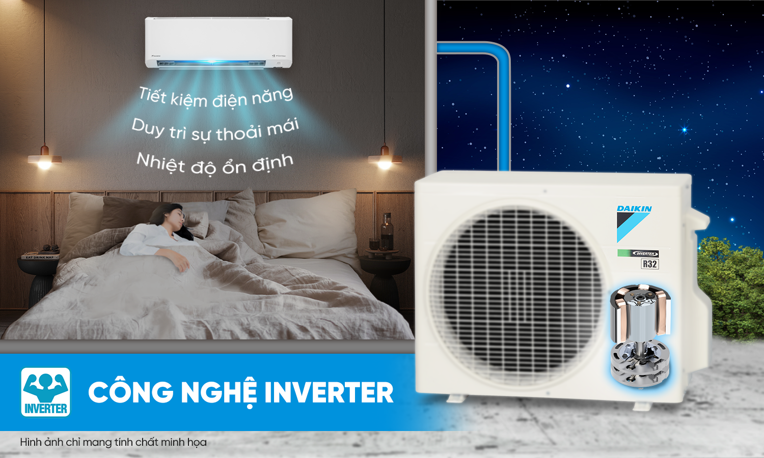 Giờ đây, bạn có thể yên tâm tận hưởng không gian mát lành mà không phải bận tâm về hóa đơn tiền điện hàng tháng. Bên cạnh đó, công nghệ Inverter cải tiến giúp máy vận hành êm ái, tạo nên không gian yên tĩnh để bạn có được giấc ngủ sâu và thoải mái suốt đêm dài