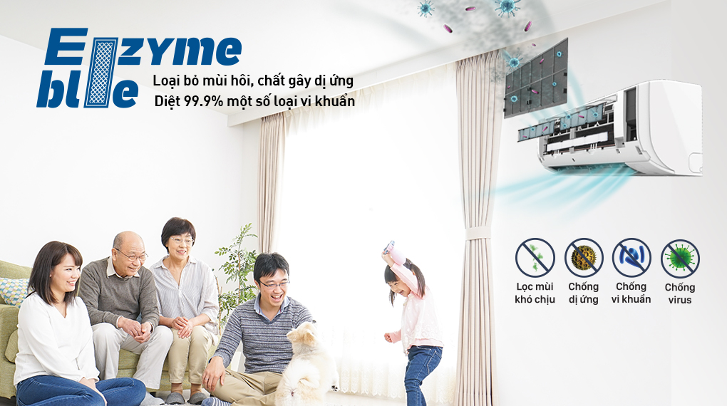 Phin lọc này như một lá chắn bảo vệ, đưa ra một giải pháp tối ưu nhằm mang lại bầu không khí trong lành cho nhà bạn giúp giảm khả năng lây nhiễm vi rút xuống dưới 1:1000. Enzyme Blue có khả năng giảm 99,9% một số loại vi khuẩn (Staphylococcus aureus, Escherichia coli (E.coli), Klebsiella pneumonia…) và loại bỏ hơn 90% các mùi hôi trong vòng 1 giờ, đặc biệt là 4 tác nhân gây mùi khó chịu trong nhà**.