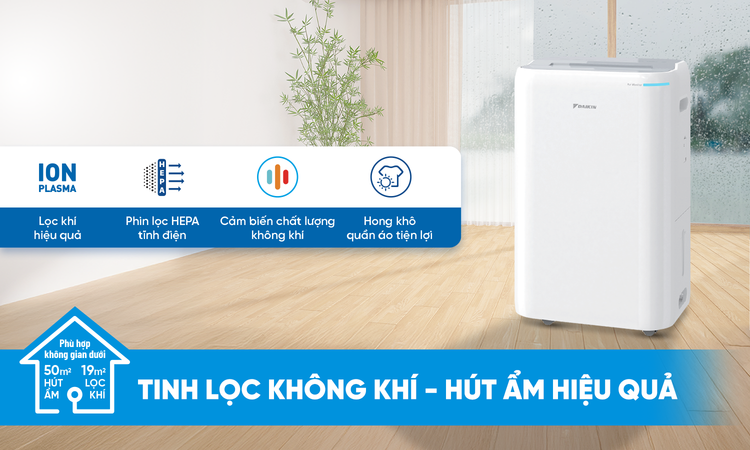 Với khả năng hút ẩm mạnh mẽ lên đến 23 lít/ngày(1), máy lọc không khí hút ẩm Daikin giúp kiểm soát độ ẩm tối ưu, giữ cho không gian luôn khô thoáng, dễ chịu và an toàn.