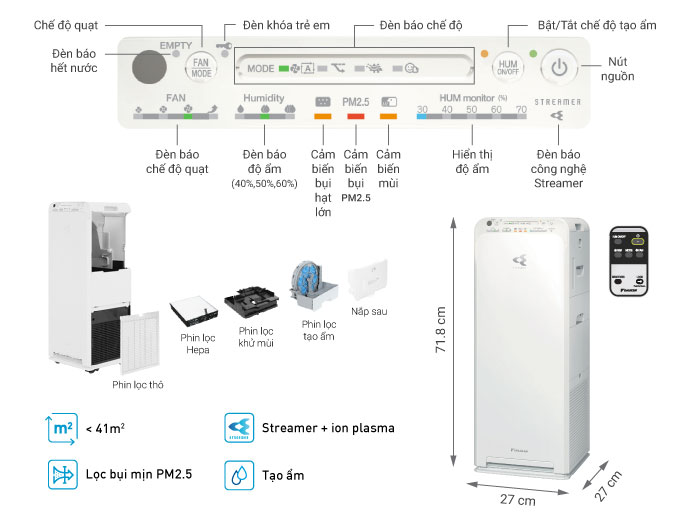 - LÀM SẠCH: Streamer loại bỏ vi khuẩn bám trên phin lọc Hepa, phin tạo ẩm và khay nước tạo ẩm.