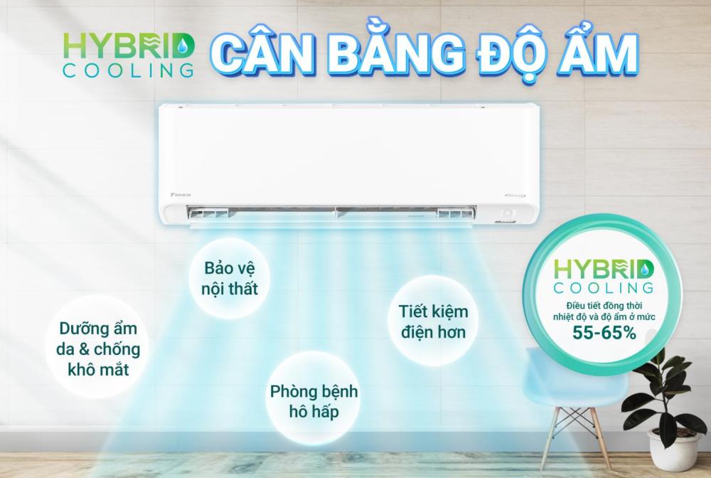 Công nghệ Hydric Cooling giúp duy trì độ ẩm trong khoảng 55–65%, mang lại cảm giác mát dịu và hạn chế khô da khi sử dụng điều hòa trong thời gian dài.