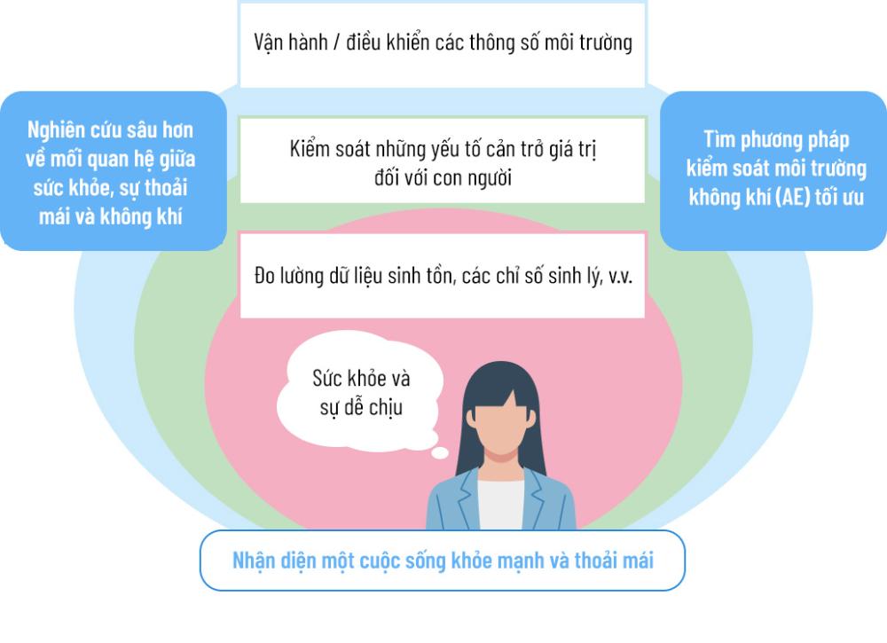 Chủ đề nghiên cứu của nhóm là “Lợi ích của điều hòa ngoài việc làm nóng và làm mát”. Nhóm nghiên cứu cách không khí ảnh hưởng đến con người trong mọi hoạt động hàng ngày, bao gồm tập trung, thư giãn, ngủ và ăn uống, để tạo ra không khí có giá trị gia tăng cao.