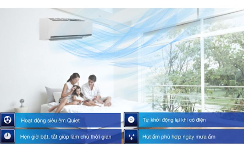 Ngoài ra, các tính năng như chế độ làm lạnh nhanh (Powerful), luồng gió Coanda và 3D đảm bảo không gian luôn mát mẻ và dễ chịu. Bên cạnh đó, công nghệ hoạt động êm ái và chỉ số CSPF cao giúp máy lạnh hoạt động hiệu quả mà vẫn tiết kiệm điện năng, phù hợp với nhu cầu sử dụng đa dạng của người dùng.