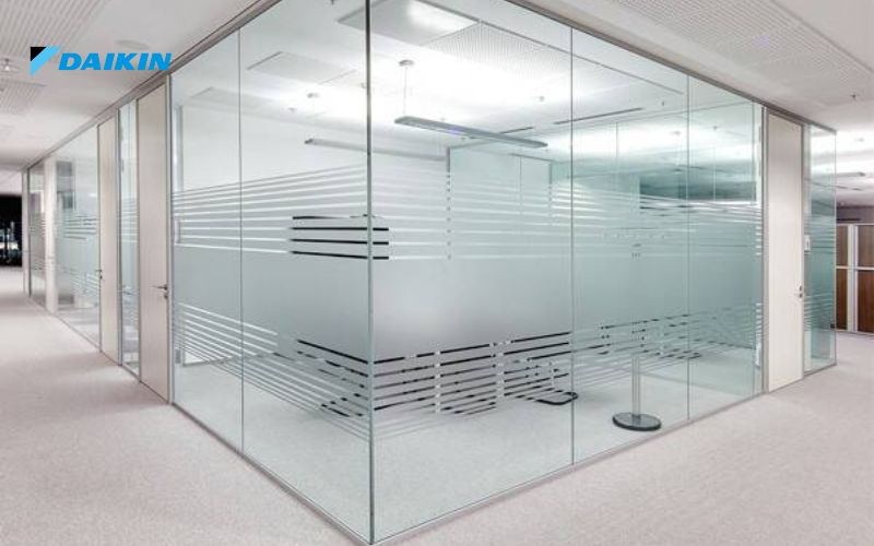 Vách ngăn phòng máy lạnh bằng vật liệu kính cường lực có độ bền cao cho người dùng