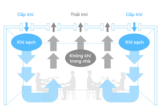 Cơ chế vận hành của hệ thống này thực sự ấn tượng: Luồng không khí sau khi được xử lý tối ưu về nhiệt độ và độ ẩm sẽ chậm rãi tuôn trào trực tiếp từ trần nhà xuống dưới như một "thác nước không khí". Đồng thời, hệ thống tận dụng các dòng khí đối lưu để đẩy luồng khí cũ trong phòng ngược lên trần và thải ra ngoài. Bên cạnh công nghệ kiểm soát luồng khí tiên tiến này, Daikin còn tích hợp thêm nhiều giải pháp đột phá khác, bao gồm cả hệ thống màng lọc hiệu suất cao nhằm đảm bảo sự tinh khiết tuyệt đối cho không gian.